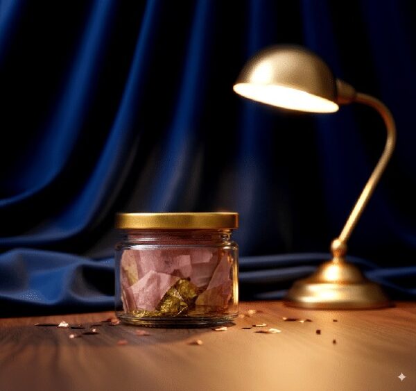 • 1 x Kaju Badam Dabba (a small glass jar, shown containing what looks like nuts, rose petals, or saffron)