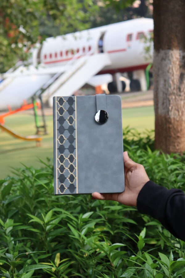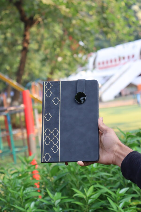 Add a touch of class to your daily notes with these beautifully crafted patterned PU leather notebooks. Featuring a unique geometric gold-accent design and a modern round-button magnetic closure, this collection blends elegance with practicality.