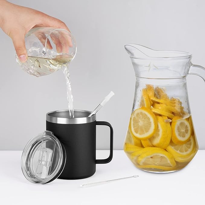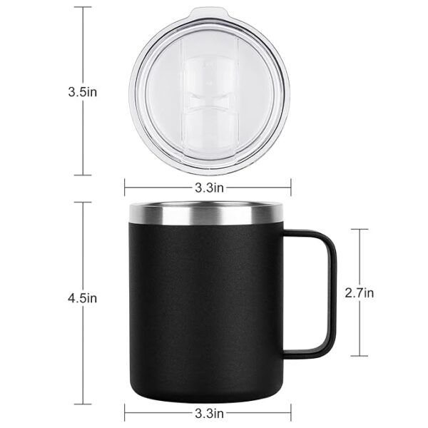 • MULTIPLE USAGES: With the suitable capacity, this double wall vacuum insulated coffee travel mugs with handles and sliding lids , not only can meet your daily needs: holding 12oz coffee, tea, beer, wine, juice, milk, smoothie, ice cream in many occasions: home, dinner table, family gathering, office, swimming pool, beach, picnic, BBQ, parties, camping or trips.