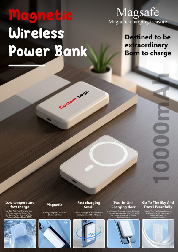 Wireless Power Bank, 10000 mAh, Super Fast Charging, Magsafe, Outputs - 20W Wired | 15W Wireless, Type C PD, Built in Protections, LED Indicator, Compatible with iPhone -USB Type C